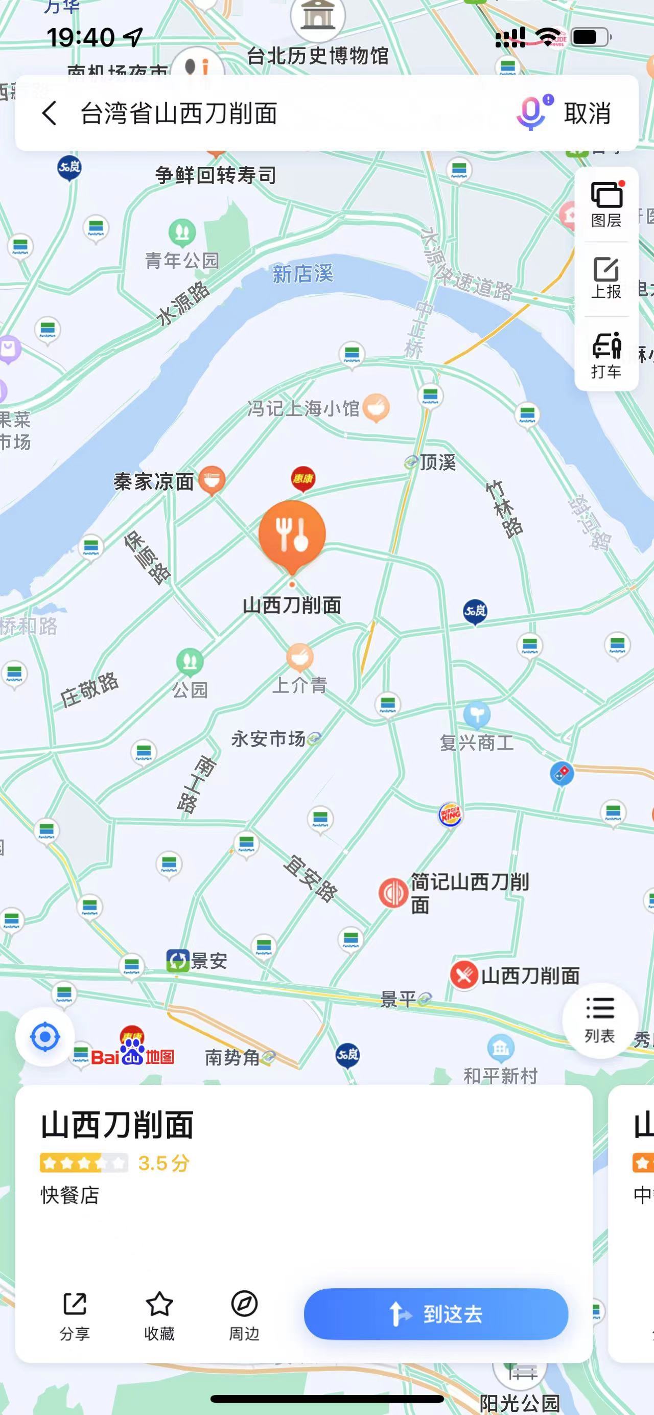 很多网友表示,“想去台湾省吃山西刀削面”。随后,在台湾省地图上搜索“山西刀削面”的网友暴增,一度把地图软件“搜崩”了。随后“百度地图被搜崩了”的话题登上热搜。不少网友反馈,在百度地图搜索“山西刀削面”时短暂出现几秒卡顿,随后恢复。