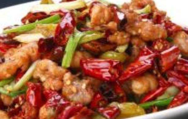 9、另起锅,锅里加入油加入蒜泥及干辣椒炒