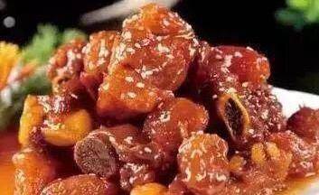 3、、锅中放少许油,下入冰糖小火慢慢翻炒;炒至冰糖完全融化,且变为棕色后,下入炒过水的排骨一起翻炒;直至排骨完全上色;再加入姜片、大葱和适量的料酒,一起翻炒均匀;