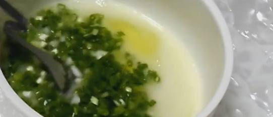 蛋清里也加点水淀粉,加点盐,再把葱切成葱花,放进碗里,搅拌均匀.