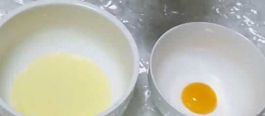 准备两个碗,把鸡蛋的蛋清和蛋黄分开.
