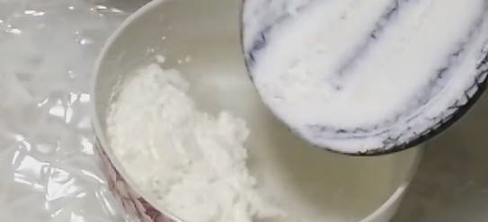 蛋清的碗里加水和玉米淀粉搅拌均匀.
