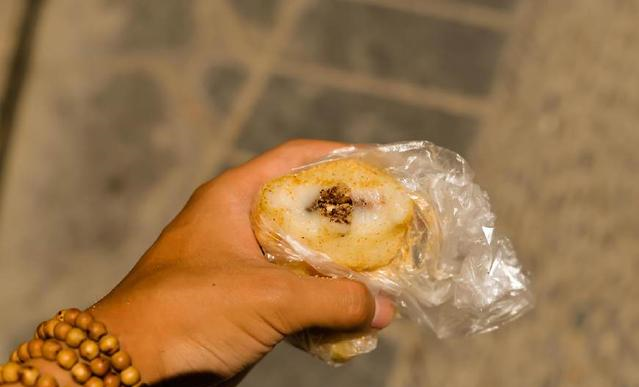接下来要推荐的是糯米粑,当地人称为打糍粑。是当人纯手工打出来的糍粑,一口下去粘粘的,还扯不断,有一点柔,却又格外好吃。