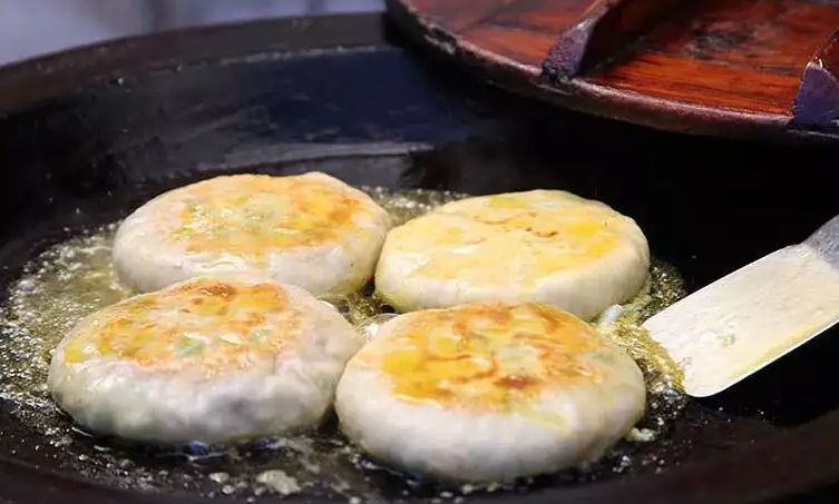 一只猪油、瘦肉、豆腐和葱馅的油煎饼中,灌入一只打碎调味的鸡蛋,熟后各馅结成整体,入口醇香鲜美,深受食客们的喜爱。