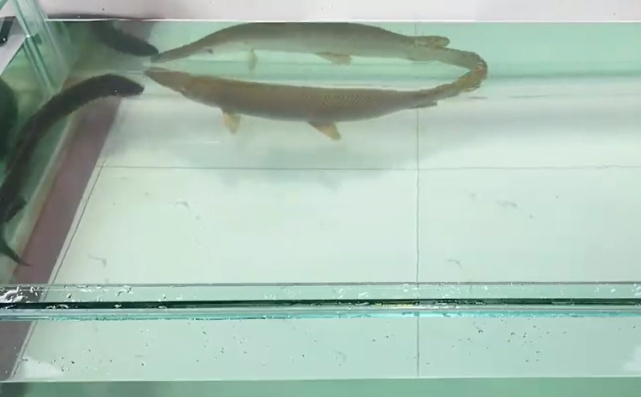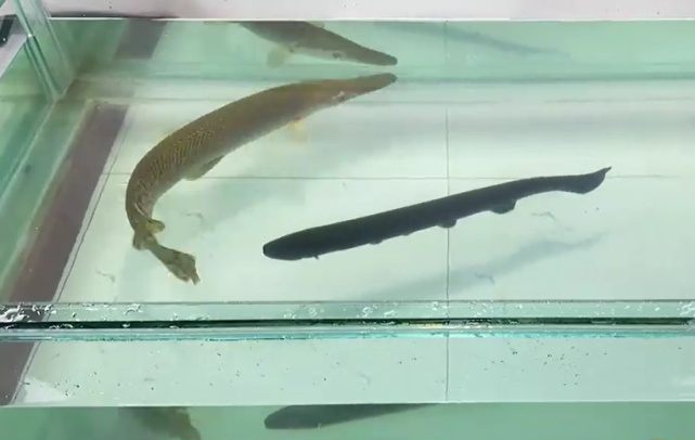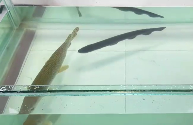 该博主为了验证鳄雀鳝“水下杀手”的称号,特意还寻了一条电鳗,打算来一场鳄雀鳝和电鳗的对决。