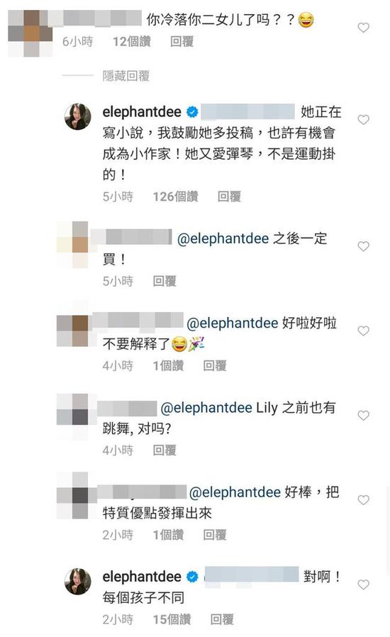 网友们得知这个好消息后,也纷纷向小S和两个女儿道贺,狂夸孩子们真的很棒,却也有人提出质疑:“你冷落你二女儿了吗?”对此,小S耐心回应:“她正在写小说,我鼓励她多投稿,也许有机会成为小作家!她又爱弹琴,不是运动型的!”她认为“每个孩子不同”,大方让小孩适性发挥,高情商解答了网友的问题。