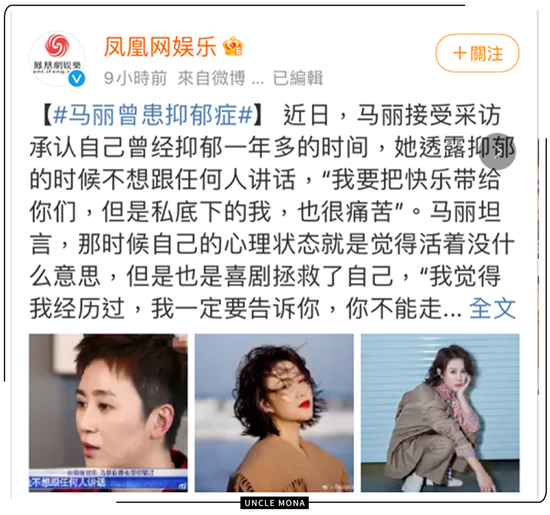 原标题:马丽自曝抑郁症:成年人的崩溃都藏得很好