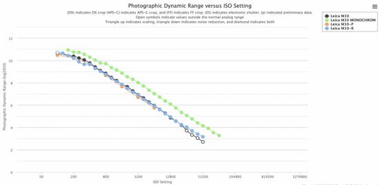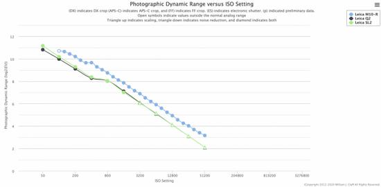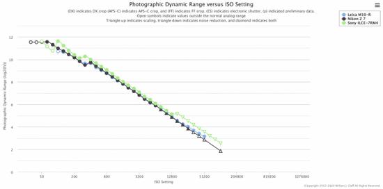 据悉国外测试网站PhotonsToPhotos刚刚公布了徕卡M10-R相机的传感器动态范围测试成绩,并与其它机型进行了对比: