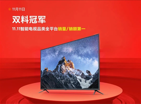 小米电视夺得双11全平台销量/销额第一,获天猫、京东、易购三平台销量/销额双料冠军!