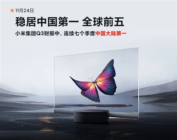小米集团Q3财报中,智能电视稳居中国第一,全球前五。小米智能电视出货量共计310万台,连续七个季度中国大陆第一;小米电视及小米盒子月活用户3580万,同比增长49.9%。