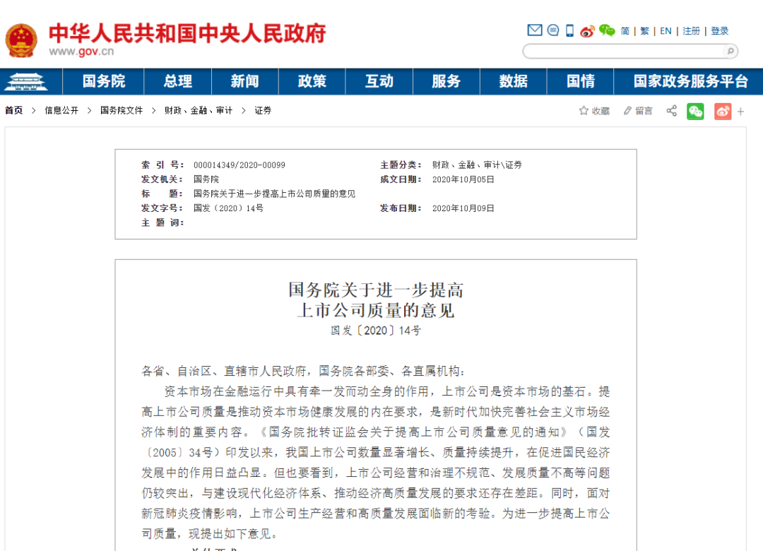 9日晚间,国务院发布关于进一步提高上市公司质量的意见。