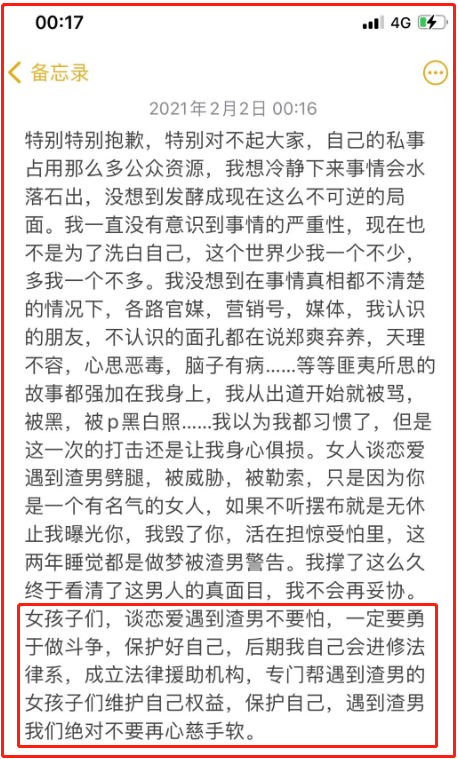 疑似郑爽备忘录曝光,将进修法律专业,成立援助机构专门对付渣男